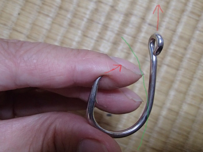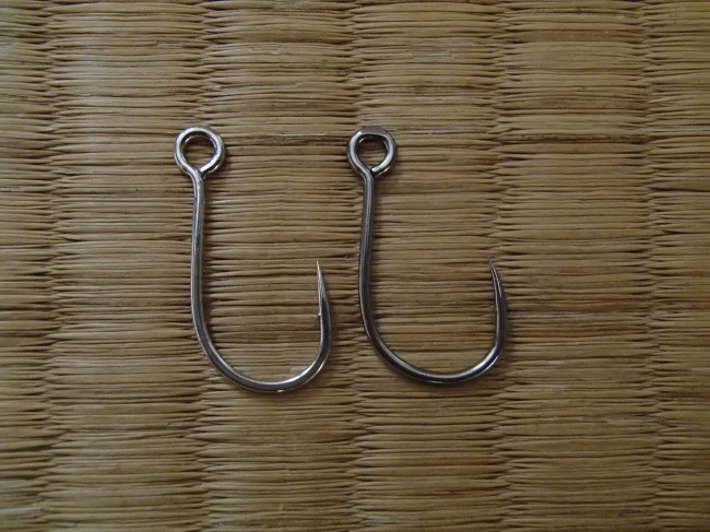 確かに、細軸のフックは刺さりがよくてフッキングする確率はいいのかもしれませんが、中小型のアタリをいくら効率的に取れたところで、大型のファイト時に伸びてしまっては使い物にならないとおもいます。どうも日本の製品は、「小物でも良いから何とかして釣りたい。」といういじましい釣り人の思いが強く反映されすぎているような気がします。